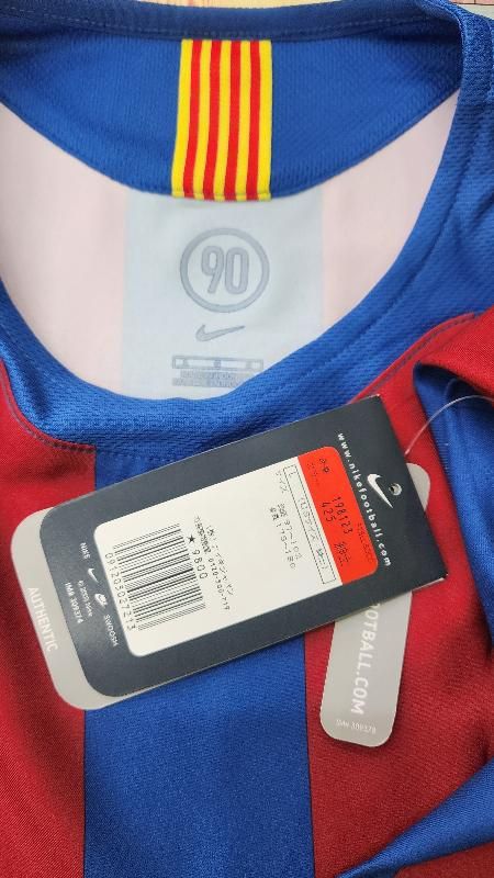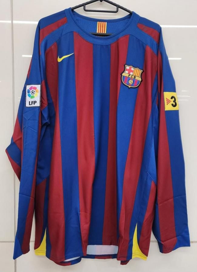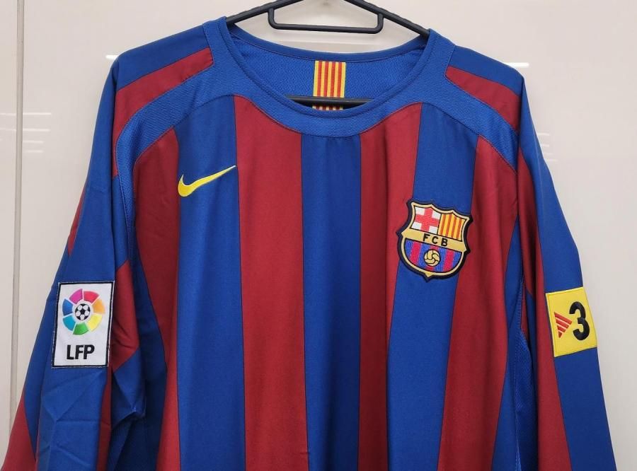 NIKE社製 FCバルセロナ(H)05/06 長袖 メッシ#30 + TV3パッチ付き! 新品、未使用、紙タグ付きのデッドストックユニフォームでございます! 右袖にTV3パッチ付きMESSI#10 !! NIKE5作目のバルサユニフォームです。メッシはTopチームデビューして2シーズン目の05/06シーズン。 05/06前期は前年に続いて背番号#30、後期から背番号#19に変更致しました。 右にメッシ、左にロナウジーニョ#10、中央CFはエトー#9でLiga制覇、CL制覇のダブルタイトル! ちなみにNIKEのバルサ長袖はこのシーズンからアジア限定発売だった様です。