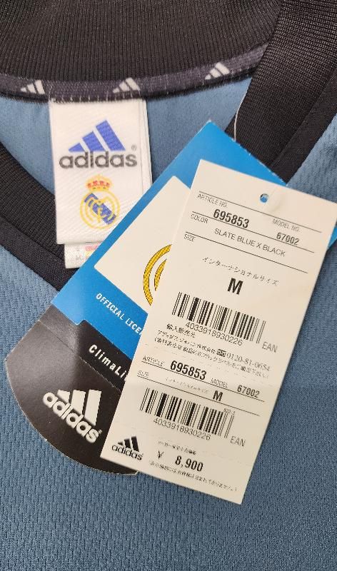 adidas社製 レアルマドリード(3rd)01/02 フィーゴ#10 新品、未使用、紙タグ付きのデッドストックユニフォームでございます! 右袖に刺繍ワッペン型のLFPパッチ付き。 裾にCLIMA LITEのタグ付き。 右胸のadidasロゴは刺繍、左胸のクレストも刺繍でございます。